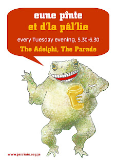 Tuesday 5.30-6.30pm: pub Jèrriais at the Adelphi in the Parade – drop in any time for some vocab, an activity, conversation. Join the table with the toad!