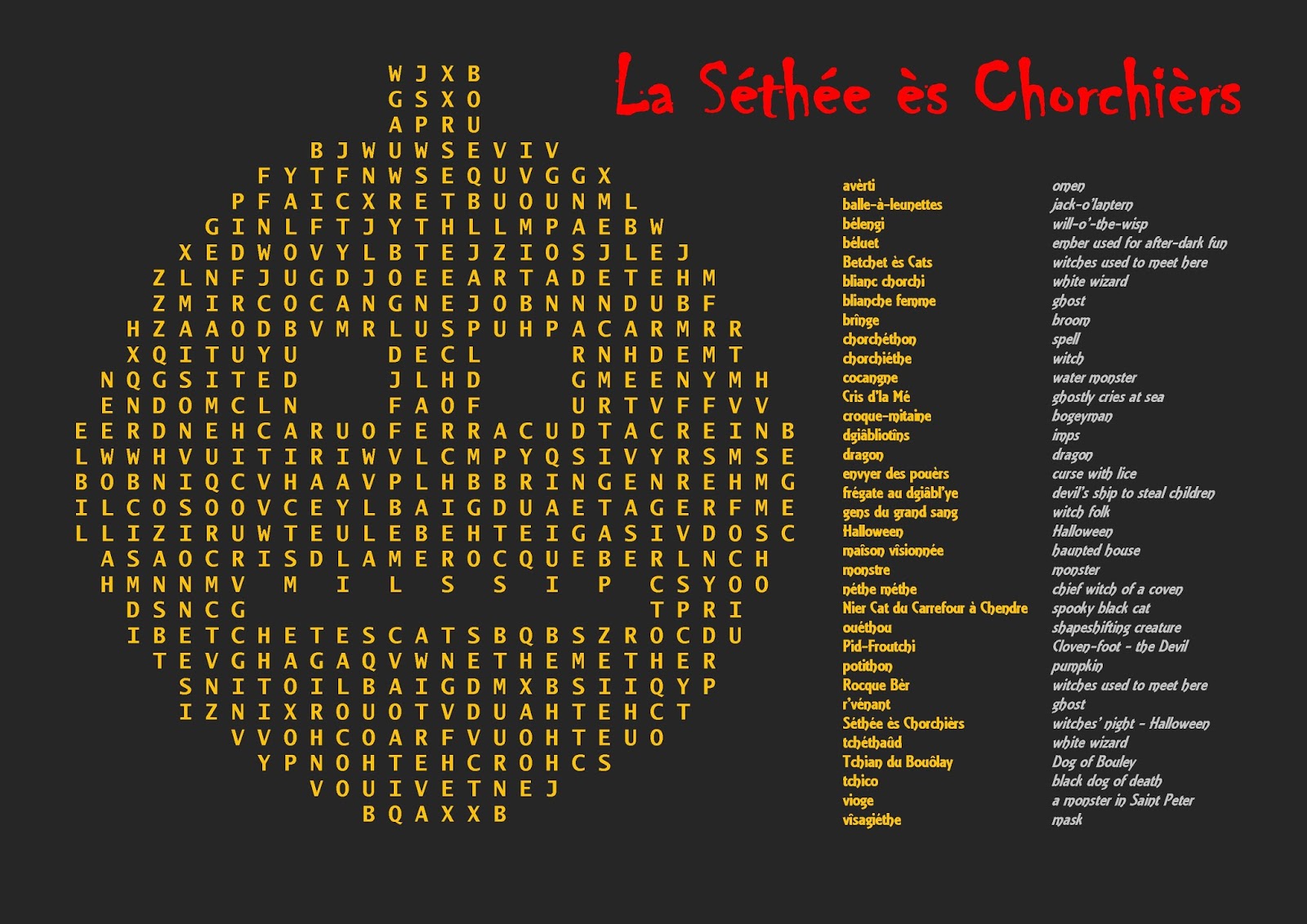 Mots muchis: La Séthée ès Chorchièrs – Wordsearch: Halloween